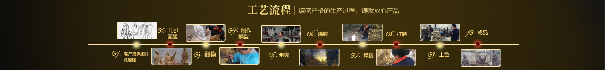 制作一件完美的人物雕塑,最重要的步驟就是制作泥塑模型,然后再用工業(yè)硅膠拓印、翻模。所以人物雕塑的姿態(tài)、神情生動(dòng)、莊嚴(yán)與否直接影響最終人物雕塑的品質(zhì)。所以我廠一直對(duì)人物泥塑模型的制作格外重視。我廠以雕塑為本,以藝術(shù)為根,挾中華文化之傳統(tǒng),盡顯淋漓盡致。我們本著大膽創(chuàng)新、勇于突破的精神,以追求卓越為導(dǎo)向,堅(jiān)持寧缺勿濫為原則,并可依照您提供的要求,為您量身設(shè)計(jì)制作。我廠人才濟(jì)濟(jì),有智慧嚴(yán)謹(jǐn)?shù)墓芾戆嘧樱袑I(yè)技術(shù)精湛的人物雕塑制作人才和專業(yè)的施工隊(duì)伍。他們不僅具深厚的文化藝術(shù)底蘊(yùn),更汲取當(dāng)代雕塑精華,博采眾家之長(zhǎng),作品既有嚴(yán)肅莊重寫(xiě)實(shí)題材,也有輕松前衛(wèi)的抽象題材,表現(xiàn)手法上浪漫主義中不乏樸實(shí),現(xiàn)實(shí)主義中蘊(yùn)涵著激情,設(shè)計(jì)理念深刻詮釋著藝術(shù)的精髓,把古典主義和后現(xiàn)代主義完美的融合,將佛像雕塑藝術(shù)演繹為力的凝聚、美的體現(xiàn),讓人們感受到的不僅是一種藝術(shù)的浪漫與優(yōu)雅、粗獷與悲壯、更是豐富的優(yōu)秀藝術(shù)寶藏和文化傳統(tǒng),讓您在藝術(shù)與文化中穿流,在時(shí)空中飄蕩,使靈魂在藝術(shù)的海洋洗禮。 MORE+